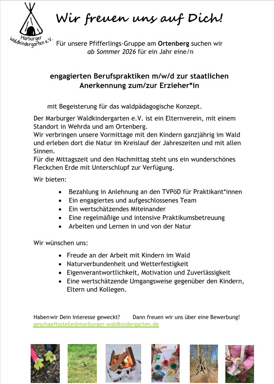 Bitte schicken Sie diese an Frau Anette Hilberg: geschaeftsstelle@marburger-waldkindergarten.de.