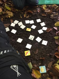 Damit man diese Ziele im Morgenkreis besprechen kann, überlegen sich die Kinder einen Namen für die Stelle. So liegt zum Beispiel an der „umgefallener-Baum-Stelle" eine riesige, längst entwurzelte Eiche, die „Giftstelle" hat eine (etwas weiter entfernte) kleine Fingerhut-Population, an der „Schädelstelle" haben wir mal einen halb verrotteten Rehschädel gefunden, die „Gipfelstelle" liegt weit oben im Wald.
